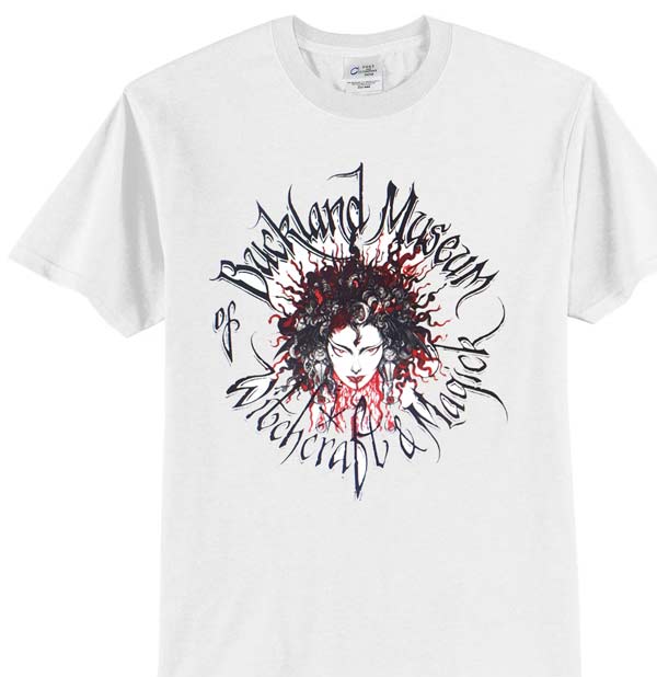 Celebrating the Espíritos Familiares: Luciana Lupe Vasconcelos exhibit with this fantastic Medusa t-shirt design, illustration by LLV and text design by Steve Samsara. Our first not black t-shirt! This shirt run will be extremely limited!